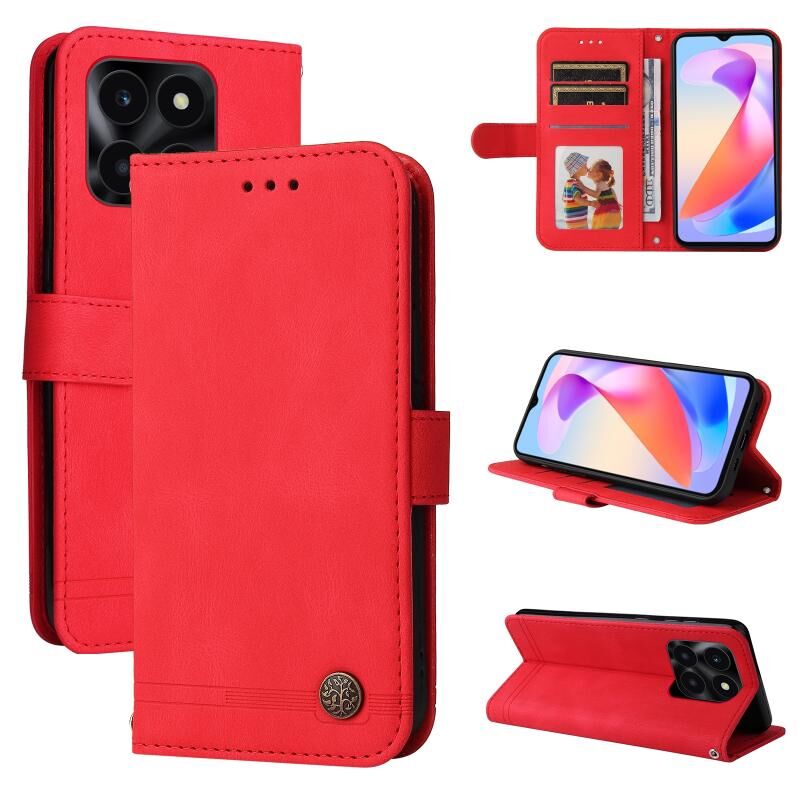 Θήκη κινητού τηλεφώνου Honor X6a με αίσθηση δέρματος, σχέδιο δέντρου, μεταλλικό κουμπί (Κόκκινο)