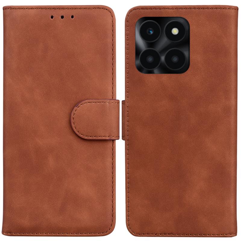 For Honor X6a Skin Feel Pure Color Flip Leather Phone Case(Brown)