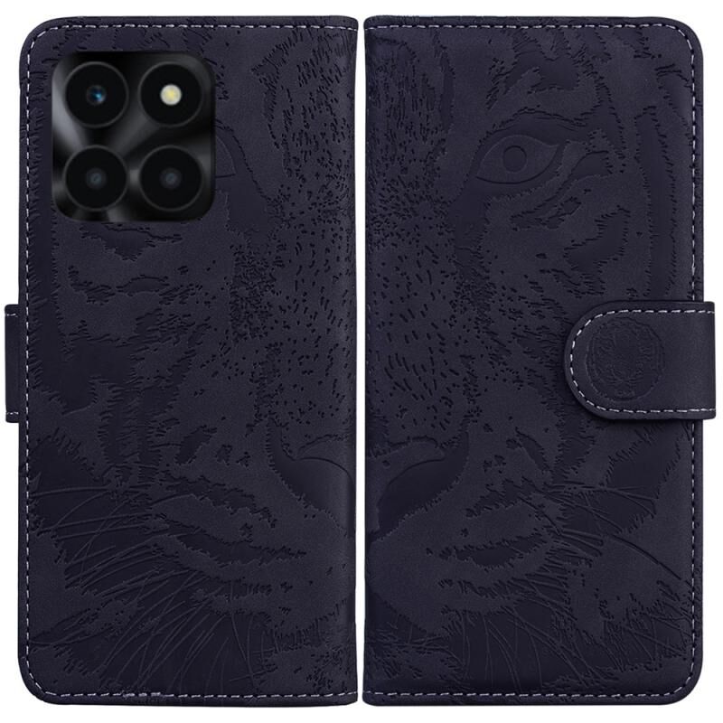 Θήκη τηλεφώνου από δέρμα με σχέδιο τίγρης και ανάγλυφο, για Honor X6a (Μαύρο)