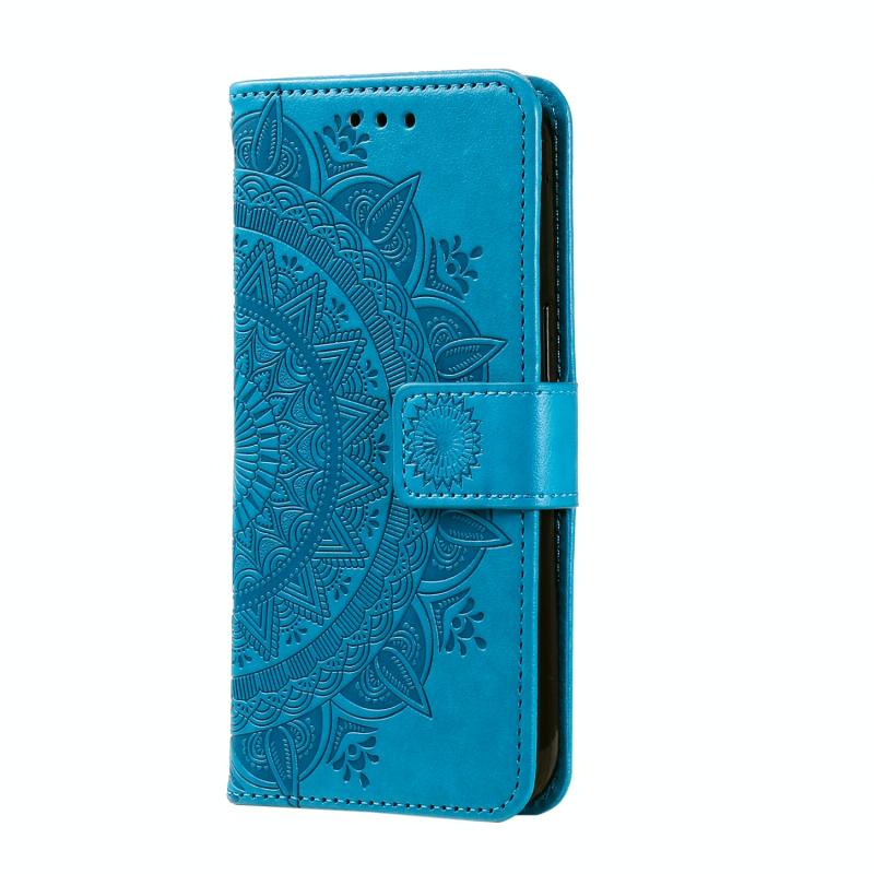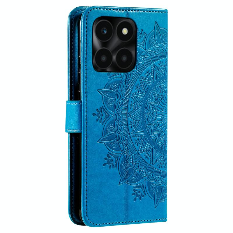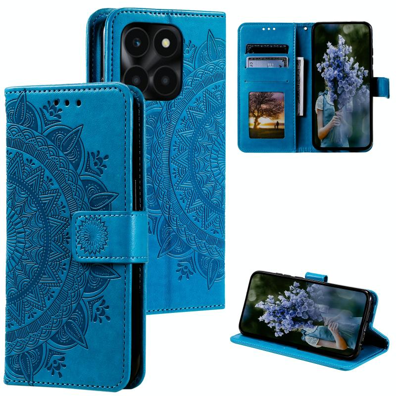 For Honor X6b 4G Global Totem Flower Embossed Leather Phone Case with Lanyard(Blue)