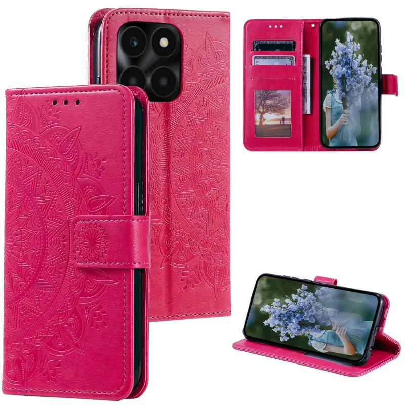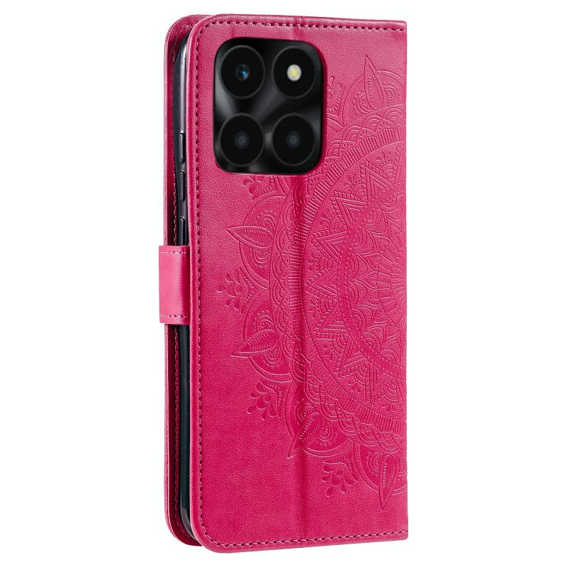 For Honor X6b 4G Global Totem Flower Embossed Leather Phone Case with Lanyard(Red)