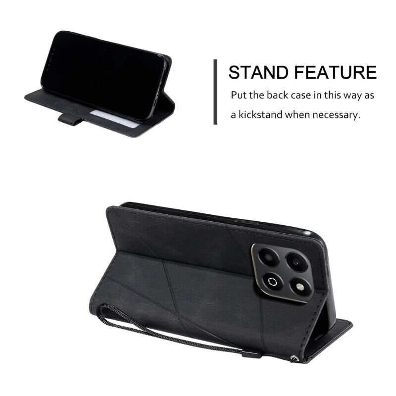 Θήκη τηλεφώνου Honor X6b 4G με υφή δέρματος και ραφές (Μαύρο)