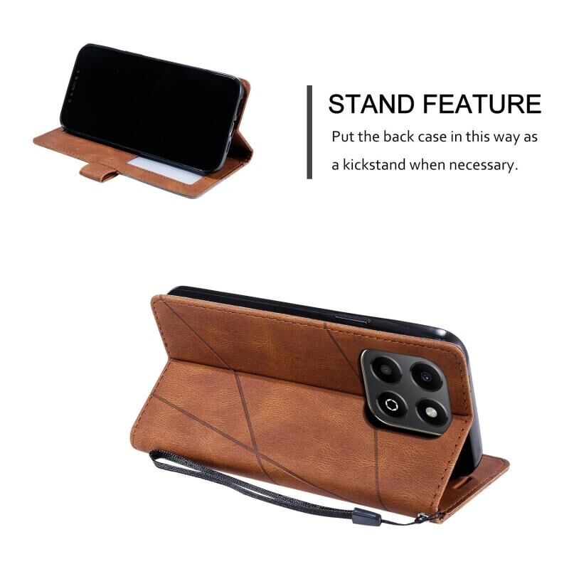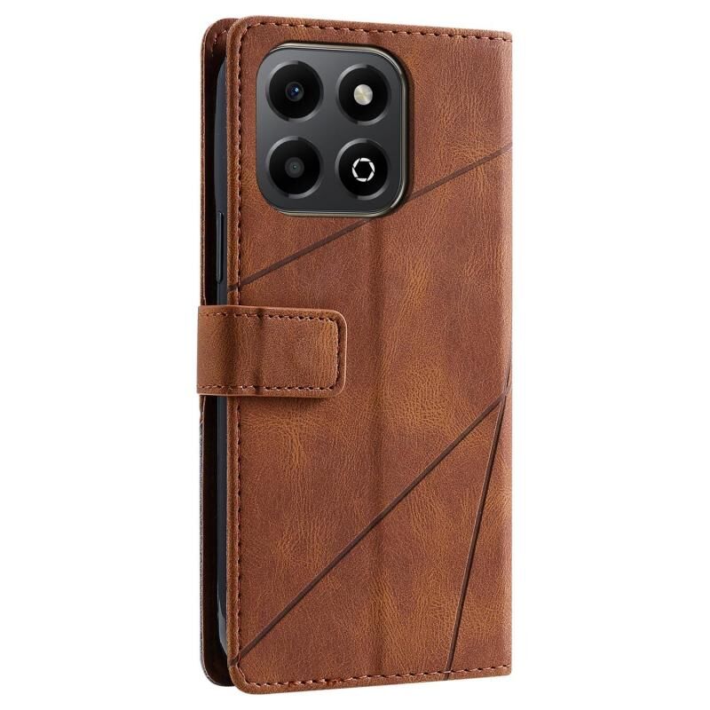 Θήκη τηλεφώνου Honor X6b 4G με υφή δέρματος και ραφές (Καφέ)