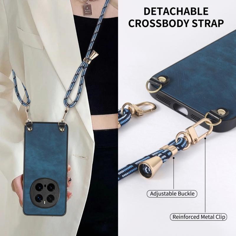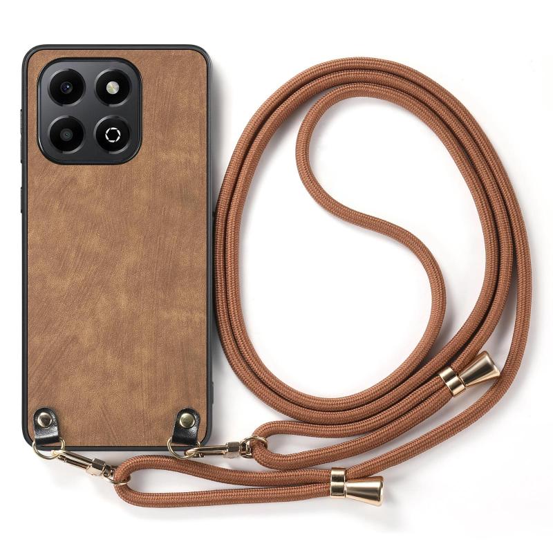 Θήκη κινητού τηλεφώνου Honor X6b 4G με δερμάτινη πλάτη από PC και λουρί crossbody (Καφέ)