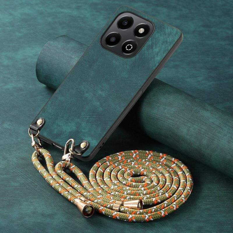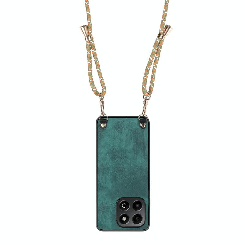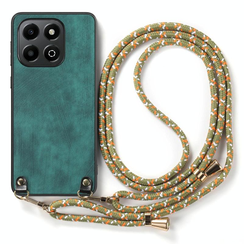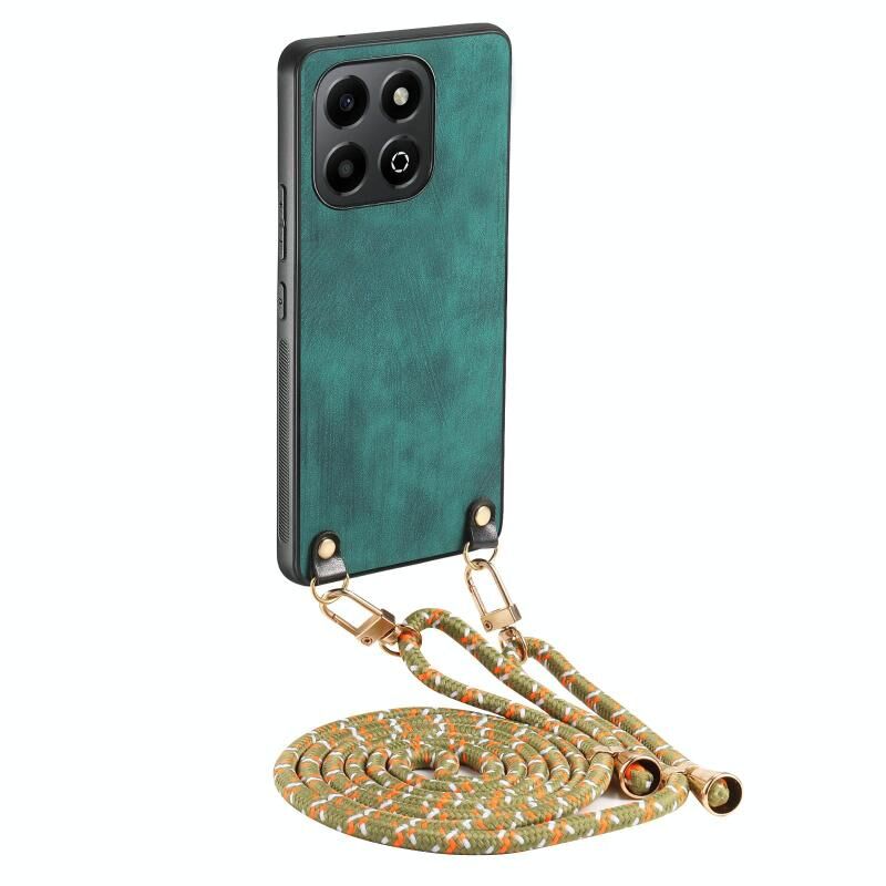 Θήκη κινητού τηλεφώνου Honor X6b 4G με δερμάτινη πλάτη από PC και λουρί crossbody (πράσινο)