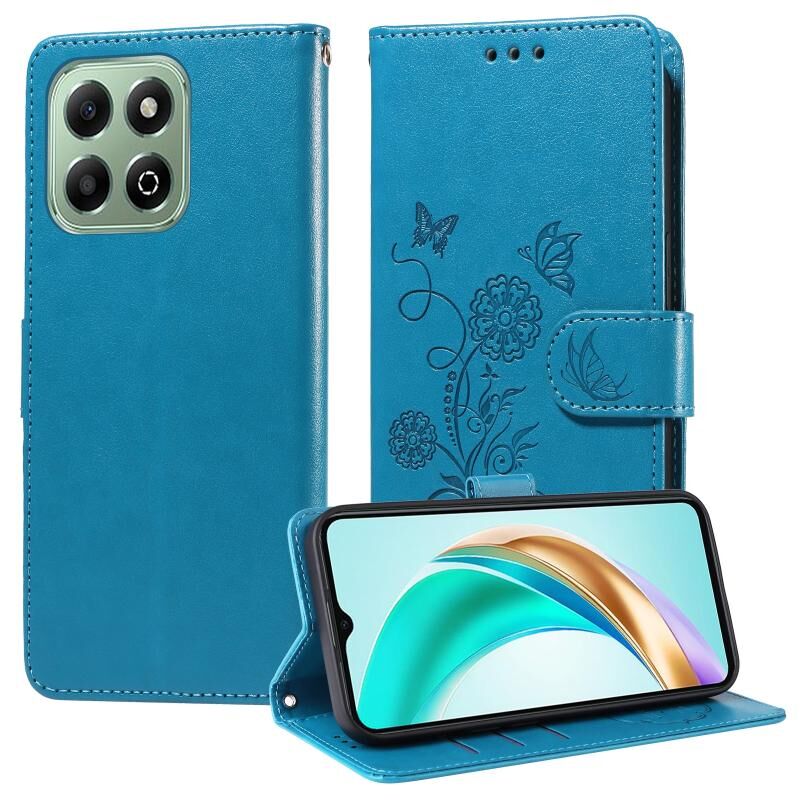 For Honor X6b 4G / X6a Embossed Butterfly Flowers Leather Phone Case(Blue)