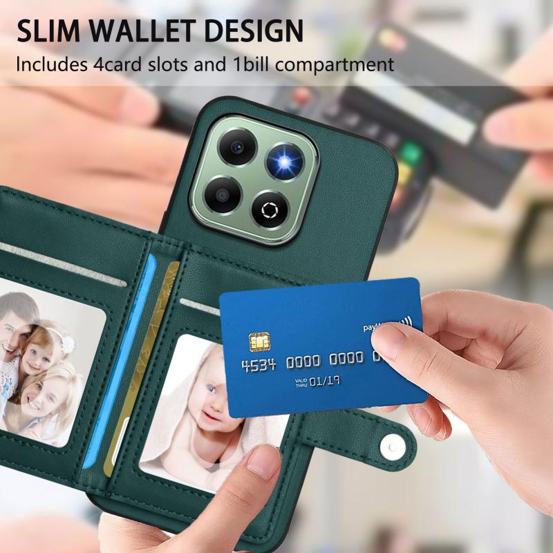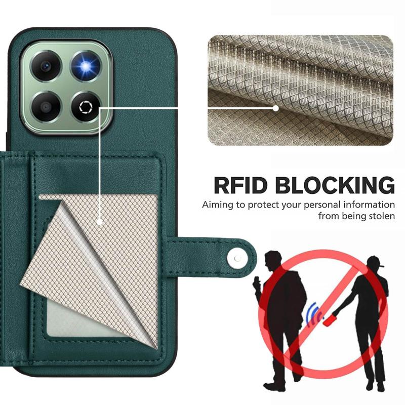 For Honor X6b Button Card Bag RFID Anti-theft Phone Case(Green)