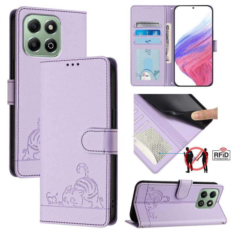 Θήκη τηλεφώνου από δέρμα με ανάγλυφο σχέδιο γάτας και ποντικού για Honor X6b, με κορδόνι (Μέντας Πράσινο)