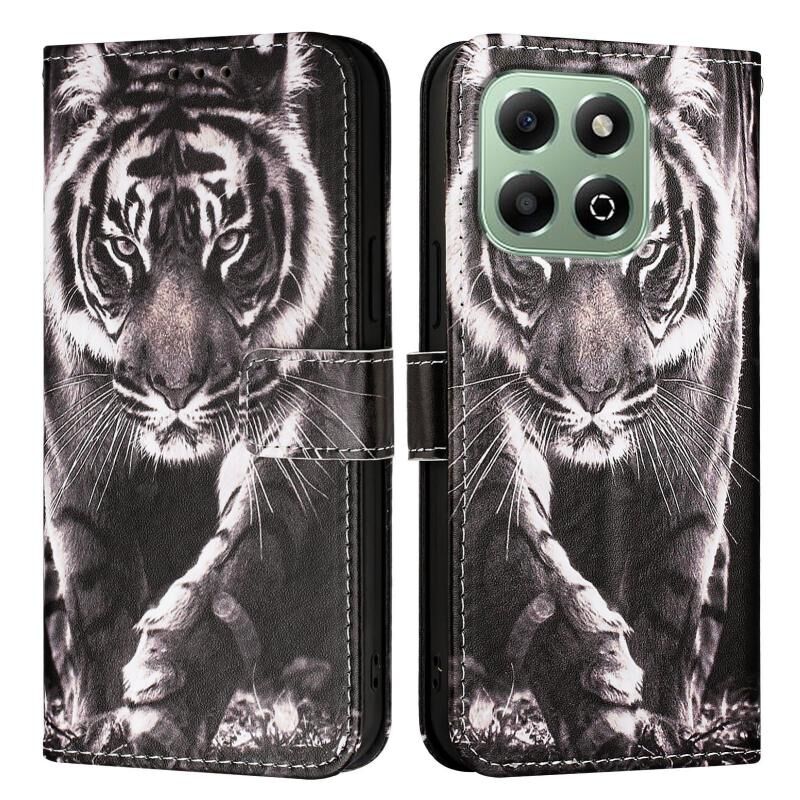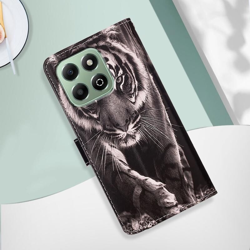 Θήκη τηλεφώνου από δέρμα απλής ύφανσης για Honor X6b με έγχρωμο σχέδιο (Τριαντάφυλλα σε μαύρο φόντο)