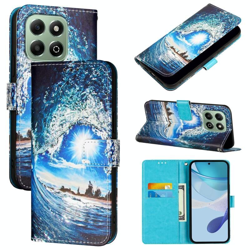 Θήκη τηλεφώνου από δέρμα με απλή ύφανση για Honor X6b με έγχρωμο σχέδιο (Κύματα και Ήλιος)
