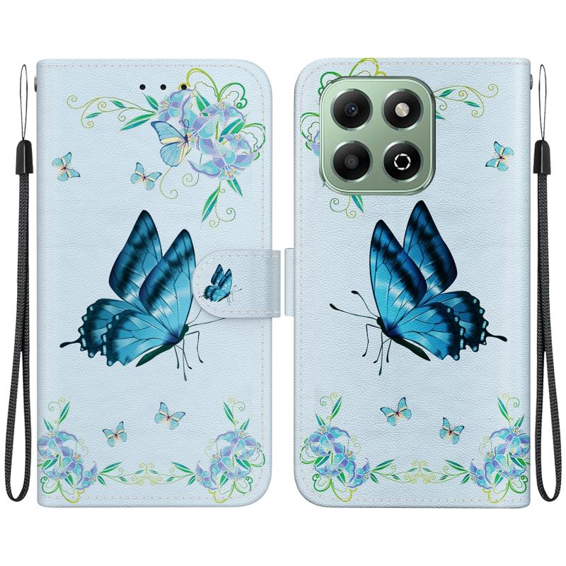 For Honor X6b Crystal Texture Colored Drawing Leather Phone Case(Blue Pansies)