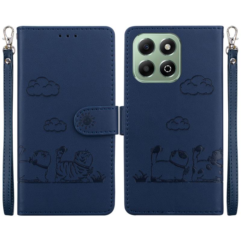 For Honor X6b Cute Cats RFID Leather Phone Case(Blue)