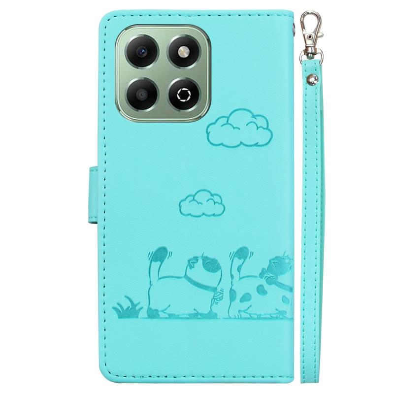 For Honor X6b Cute Cats RFID Leather Phone Case(Green)
