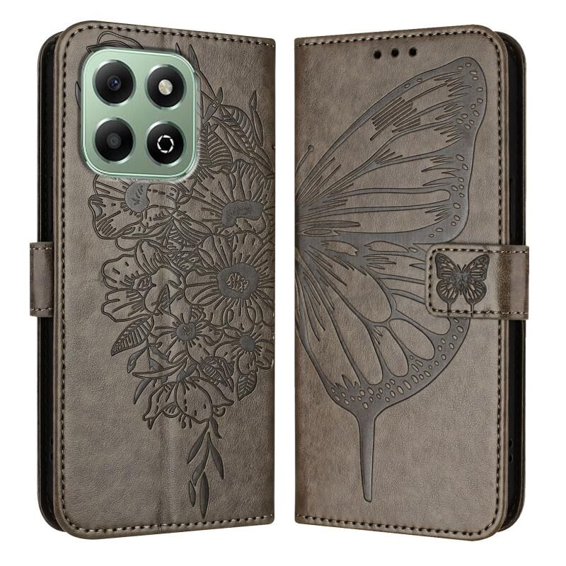 Για Honor X6b ανάγλυφη πεταλούδα δερμάτινη θήκη τηλεφώνου (γκρι)
