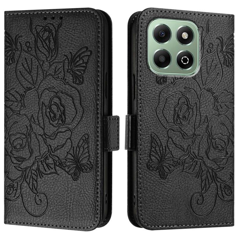 For Honor X6b Embossed Rose RFID Anti-theft Leather Phone Case(Black)