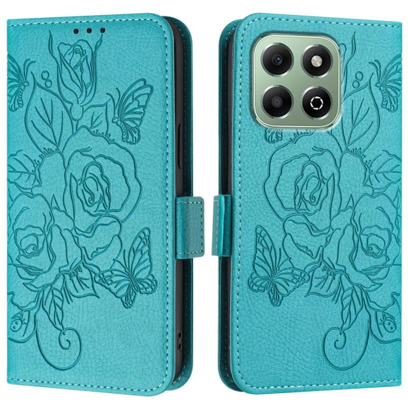 For Honor X6b Embossed Rose RFID Anti-theft Leather Phone Case(Light Blue)