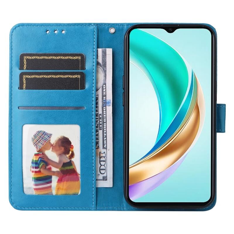 Θήκη τηλεφώνου For Honor X6b με ανάγλυφο σχέδιο ηλίανθου από δέρμα (Μπλε)