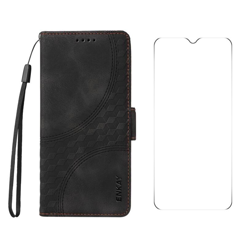 Θήκη κινητού τηλεφώνου Honor X6b ENKAY ανάγλυφη Ρομβοειδής Αστρικό Δέρμα με προστατευτική μεμβράνη οθόνης (Μαύρο) (ENKAY)