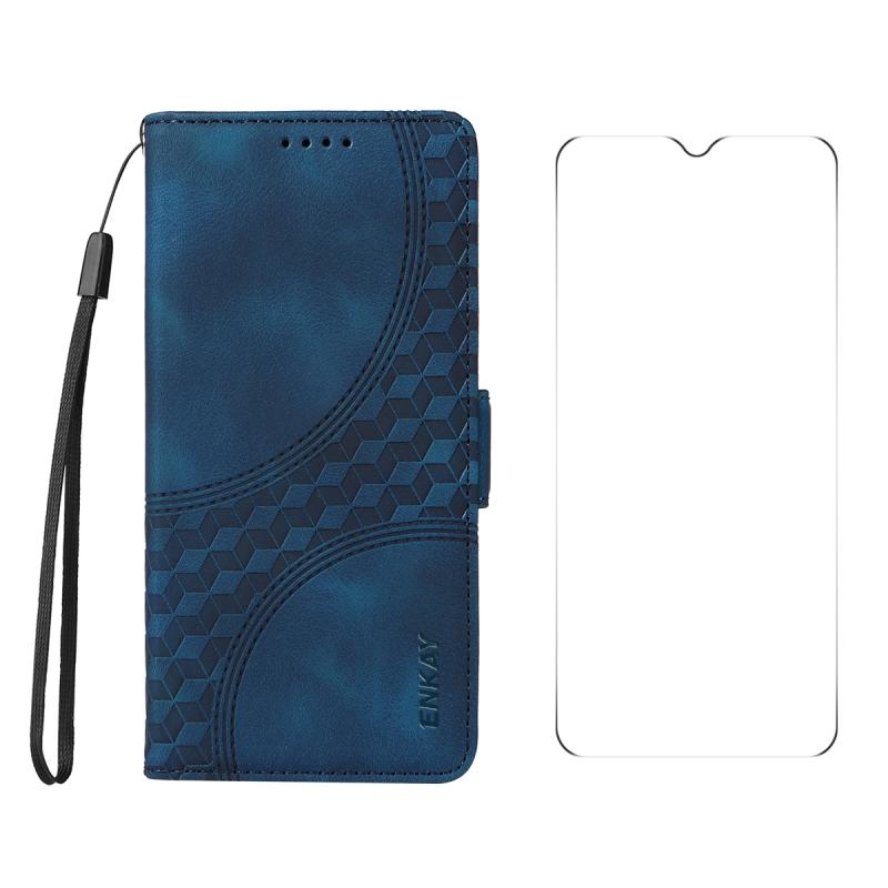 For Honor X6b ENKAY Embossed Rhombus Starry Leather Phone Case with Screen Film(Blue) (ENKAY)