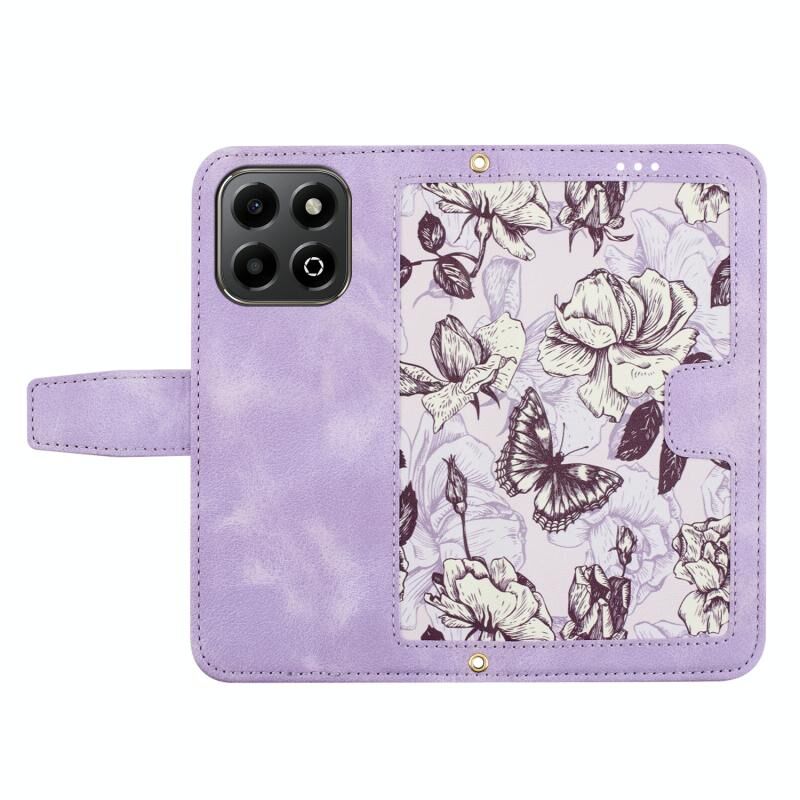 Θήκη τηλεφώνου Honor X6b από δέρμα με λουλουδάτο σχέδιο και κορδόνι (Ανοιχτό Μπλε)