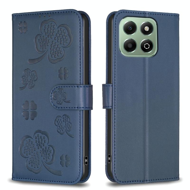 For Honor X6b Four-leaf Embossed Leather Phone Case(Blue)