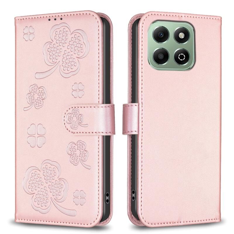For Honor X6b Four-leaf Embossed Leather Phone Case(Pink)