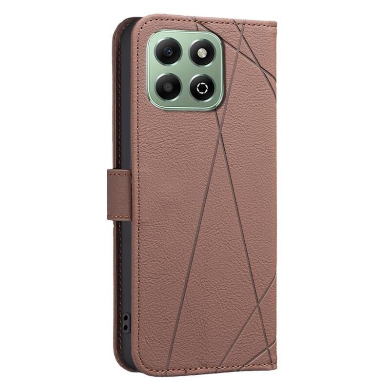 Θήκη τηλεφώνου από δέρμα με γεωμετρικό σχέδιο και τεχνολογία RFID για Honor X6B (Καφέ)