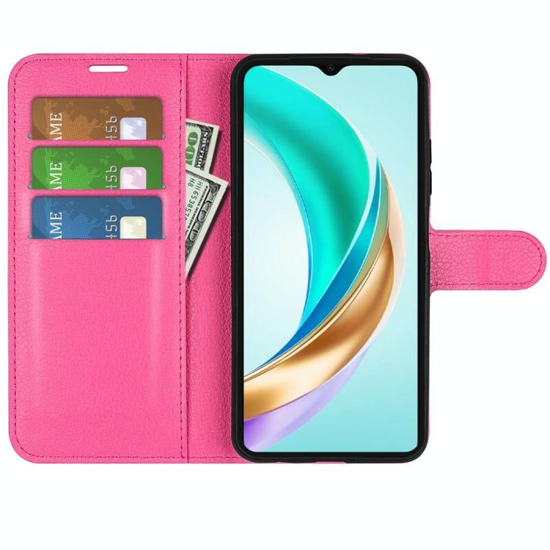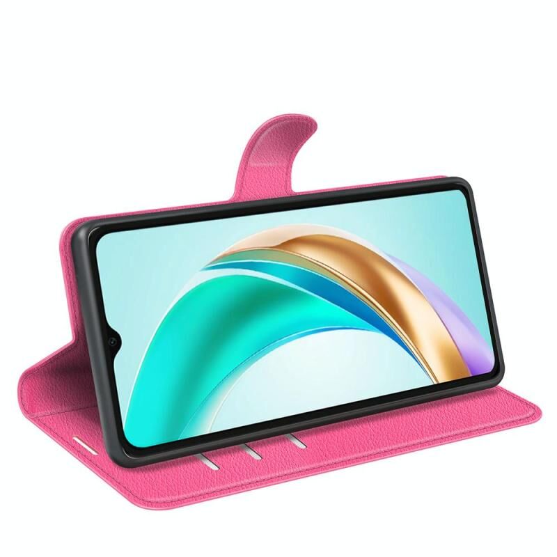 Για Honor X6b Litchi Υφή Οριζόντια Flip δέρμα τηλέφωνο υπόθεση με κάτοχο (Ροζέ κόκκινο)