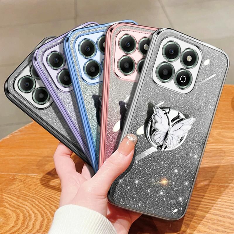 Θήκη κινητού τηλεφώνου TPU με σχέδιο πεταλούδας από γκλίτερ και διαβαθμισμένο χρώμα για Honor X6b (Black)
