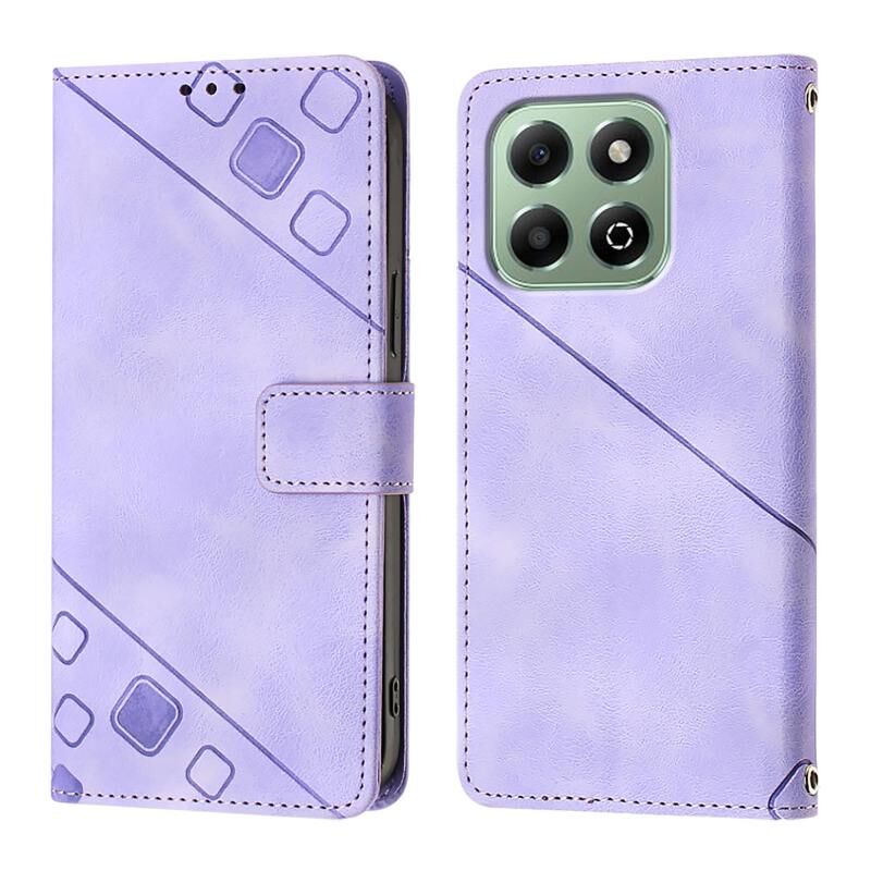 Θήκη κινητού τηλεφώνου Honor X6b με υφή δέρματος και ανάγλυφο σχέδιο (Ανοιχτό Μωβ)