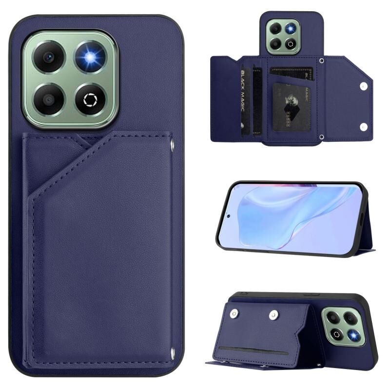 Θήκη τηλεφώνου για Honor X6b με αίσθηση δέρματος, τέσσερις θήκες για κάρτες και λουρί καρπού (Ροζ)