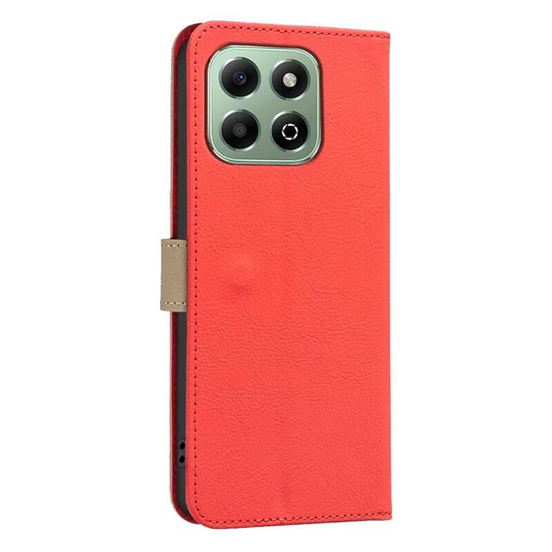 Θήκη τηλεφώνου από δέρμα με τεχνολογία RFID, για Honor X6B, με ενσωματωμένο σχέδιο κοίλου λουλουδιού και χρωματική σύνθεση (Κόκκινο)