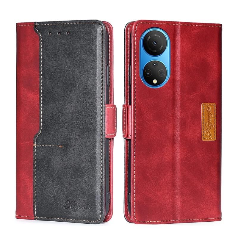 Για Honor X7 4G αντίθεση χρώμα πλευρά πόρπη δερμάτινη θήκη τηλεφώνου (Κόκκινο + Μαύρο)