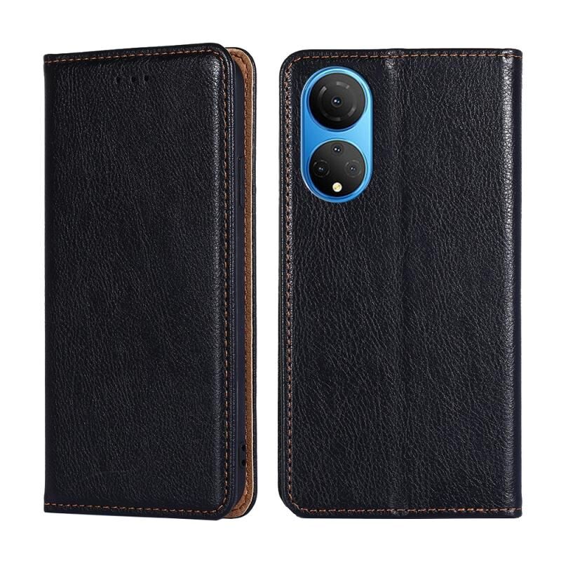 Για Honor X7 4G Gloss Oil Solid Color Μαγνητική δερμάτινη θήκη τηλεφώνου (Μαύρο)