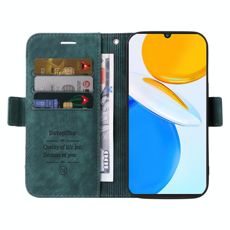 Θήκη τηλεφώνου από δέρμα με διπλή αγκράφα BETOPNICE για Honor X7 (Μωβ) (πράσινο)