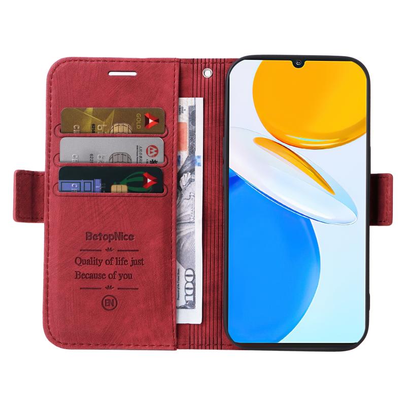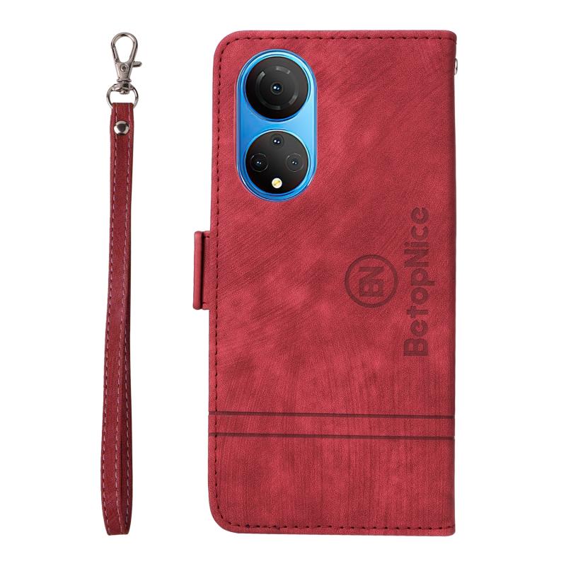 Θήκη τηλεφώνου από δέρμα με διπλή αγκράφα BETOPNICE για Honor X7 (Μωβ) (Κόκκινο)