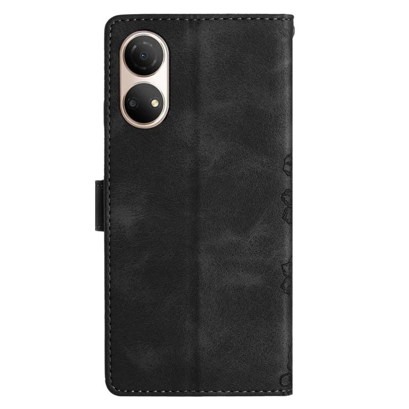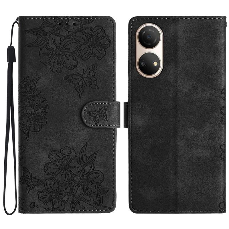 For Honor X7 Cherry Blossom Butterfly Skin Feel Embossed PU Phone Case(Black)