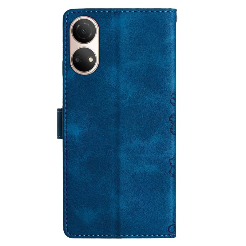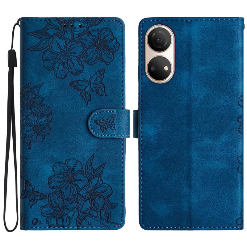 For Honor X7 Cherry Blossom Butterfly Skin Feel Embossed PU Phone Case(Blue)