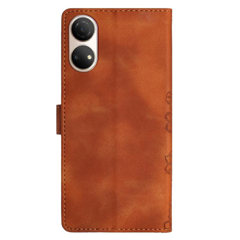 For Honor X7 Cherry Blossom Butterfly Skin Feel Embossed PU Phone Case(Brown)