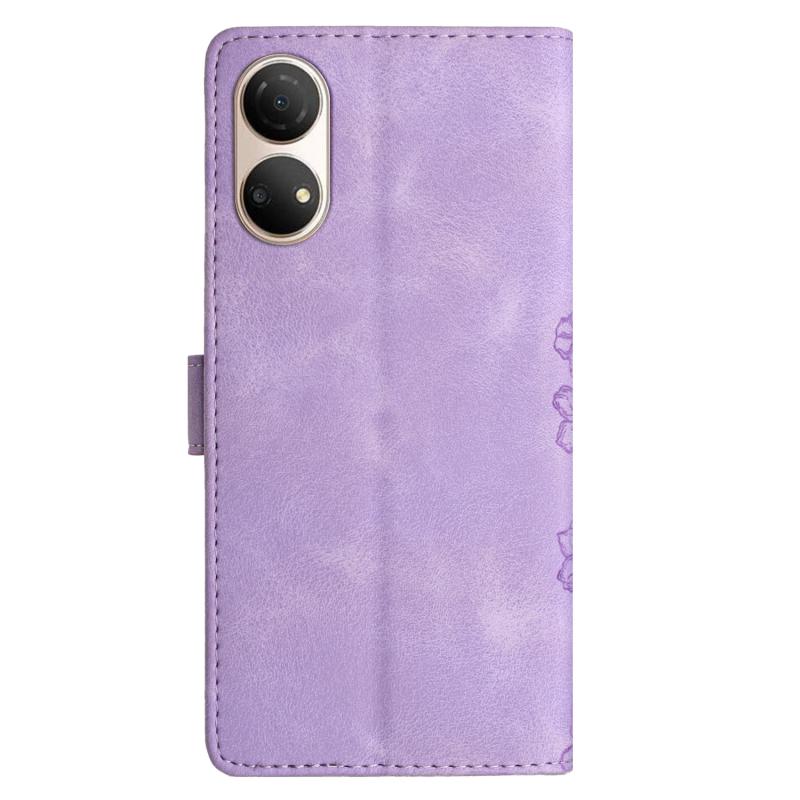 For Honor X7 Cherry Blossom Butterfly Skin Feel Embossed PU Phone Case(Purple)