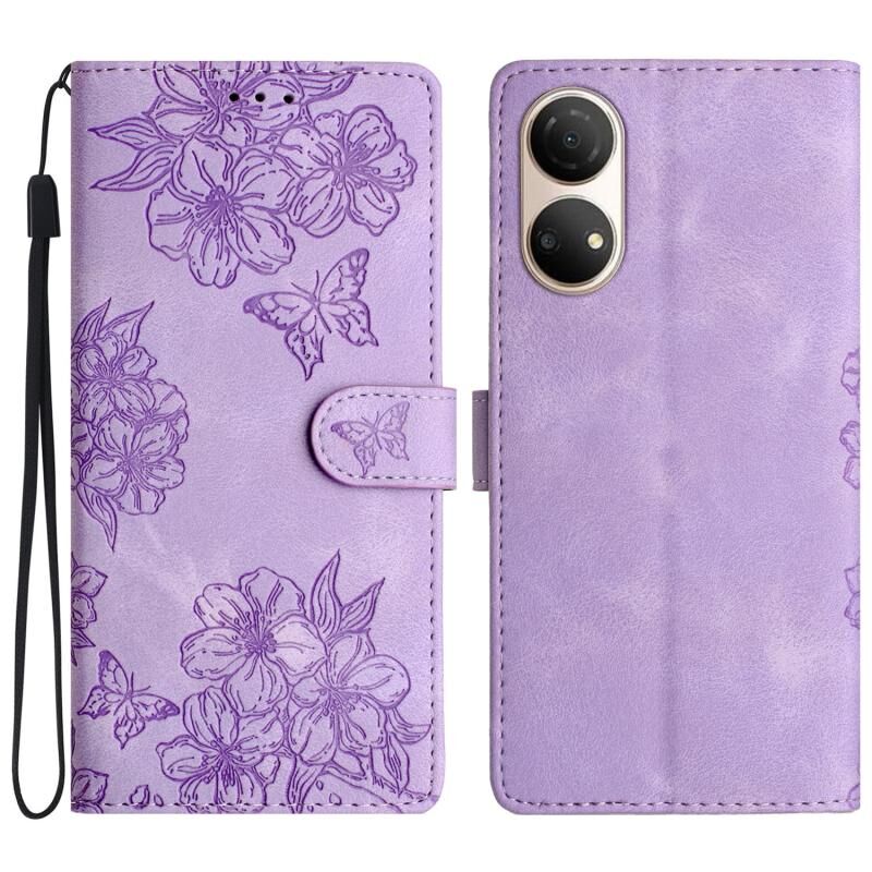 Θήκη τηλεφώνου Honor X7 Cherry Blossom Butterfly Skin Feel Embossed PU (Κόκκινη)
