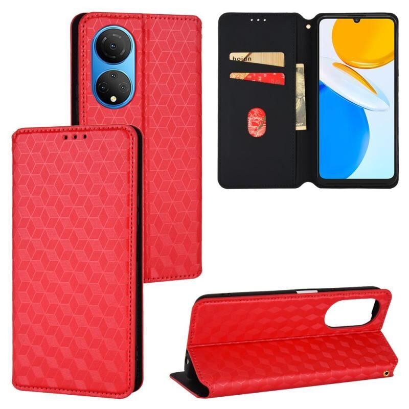 Θήκη τηλεφώνου από δέρμα με ανάγλυφο σχέδιο κυβικού πλέγματος για Honor X7 (Μαύρο)