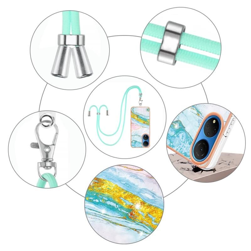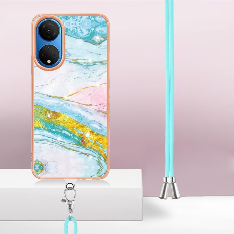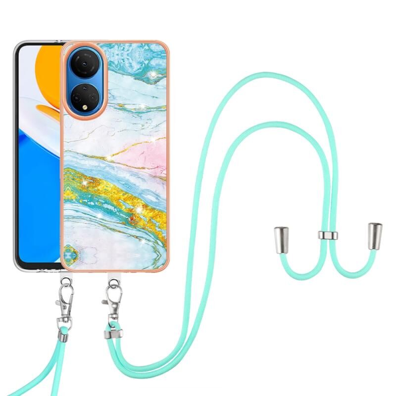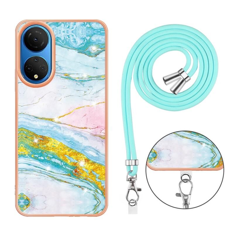 For Honor X7 Electroplating Marble Dual-side IMD Phone Case with Lanyard(Green 004)