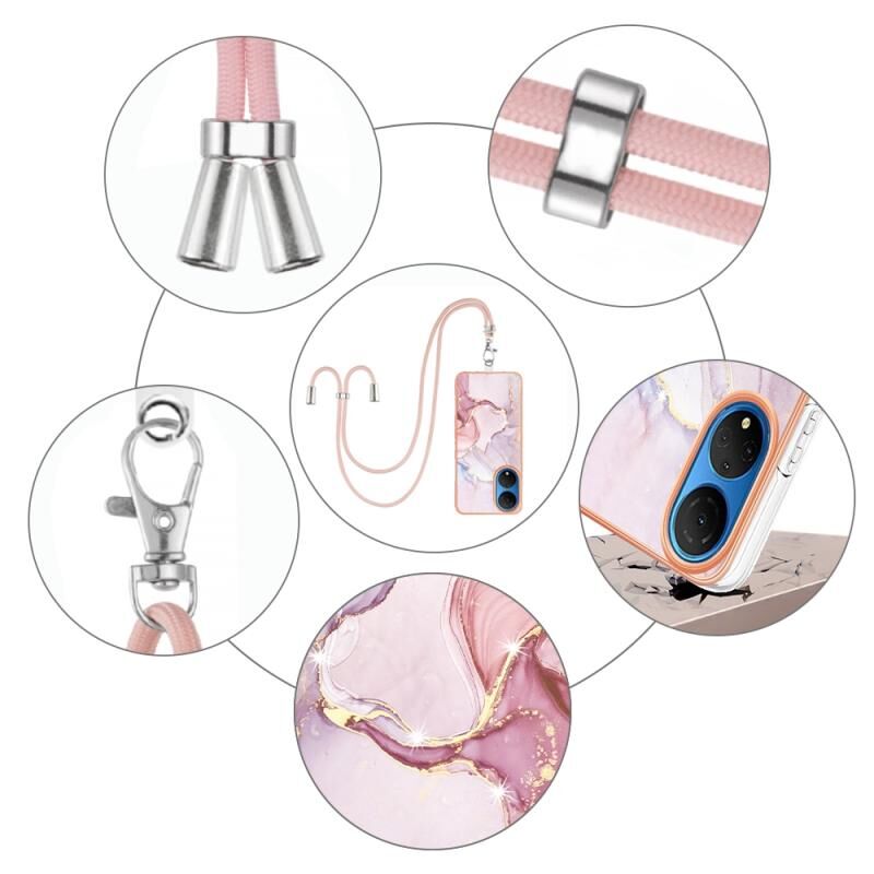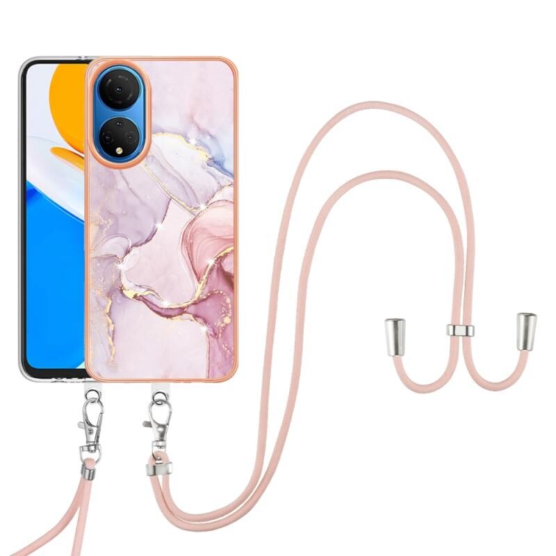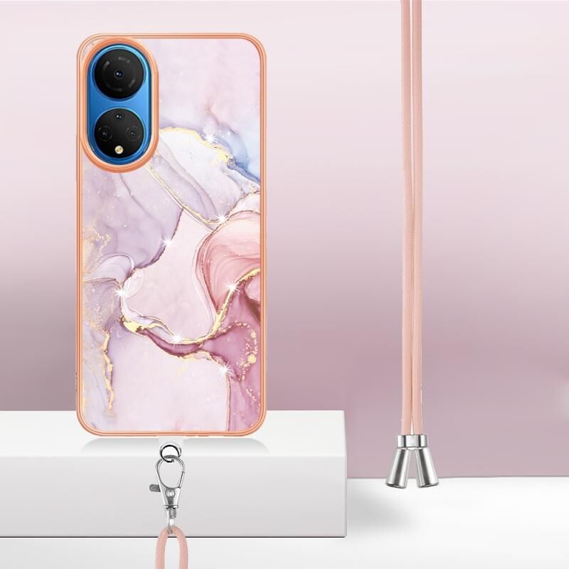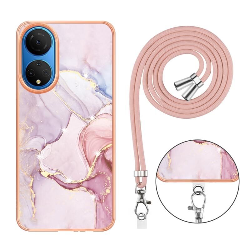 For Honor X7 Electroplating Marble Dual-side IMD Phone Case with Lanyard(Rose Gold 005)