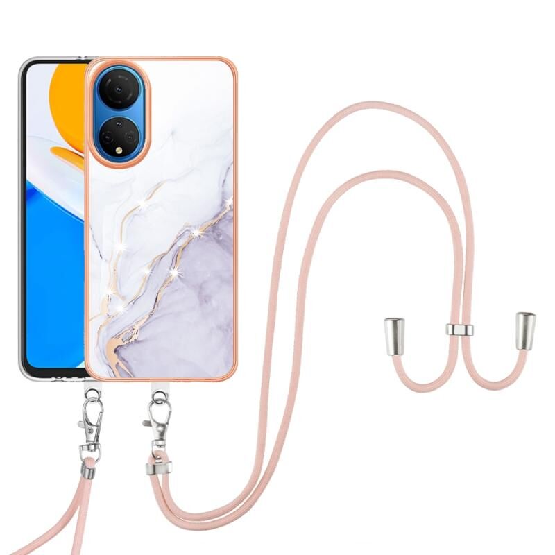 For Honor X7 Electroplating Marble Dual-side IMD Phone Case with Lanyard(White 006)