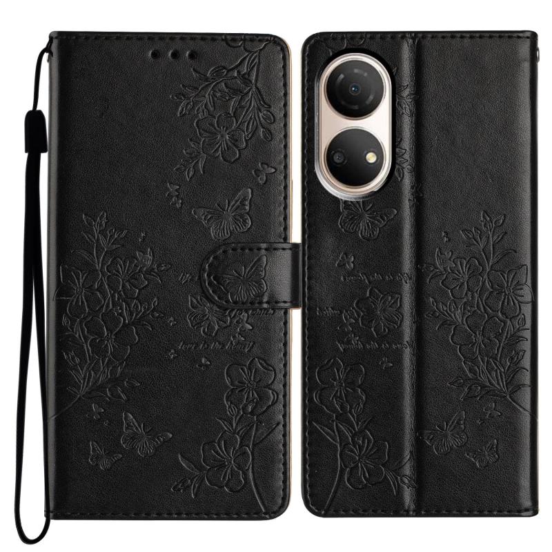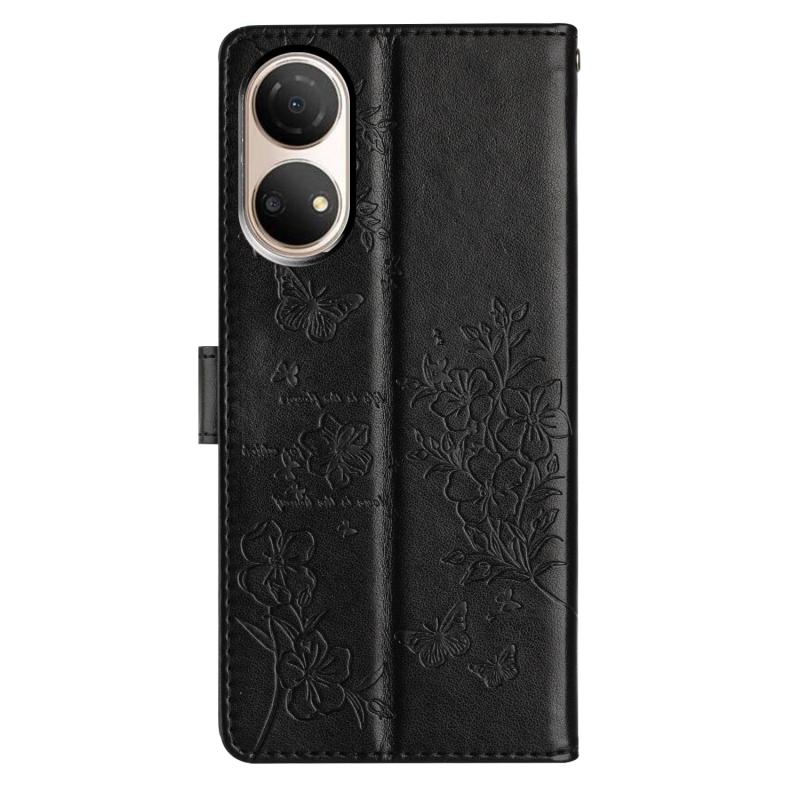 For Honor X7 / Play 30 Plus Butterflies And Flowers Leather Phone Case(Black)