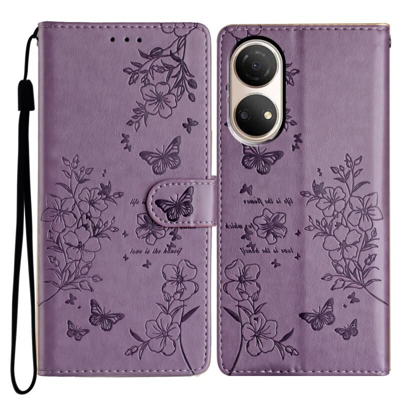 Θήκη τηλεφώνου από δέρμα με πεταλούδες και λουλούδια για Honor X7 / Play 30 Plus (Χρυσό)