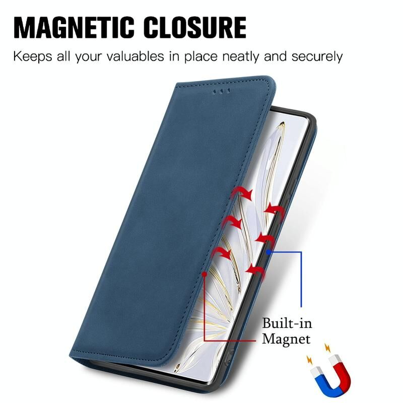 Για Honor X7 Ρετρό δέρμα αίσθηση μαγνητικό δέρμα τηλέφωνο υπόθεση (μπλε)
