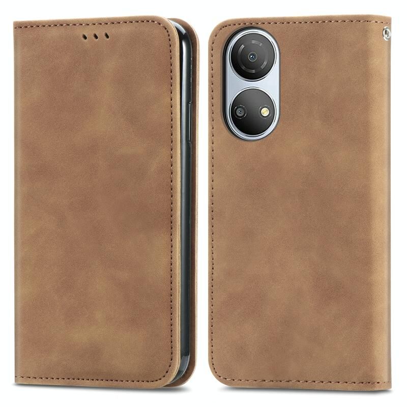 Για Honor X7 Ρετρό δέρμα αίσθηση μαγνητικό δέρμα τηλέφωνο υπόθεση (καφέ)