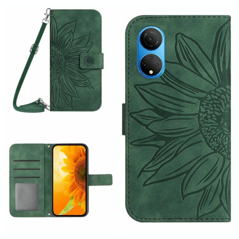 Θήκη τηλεφώνου από δέρμα με σχέδιο ηλίανθου και λουρί για Honor X7 (Μωβ σκούρο)
